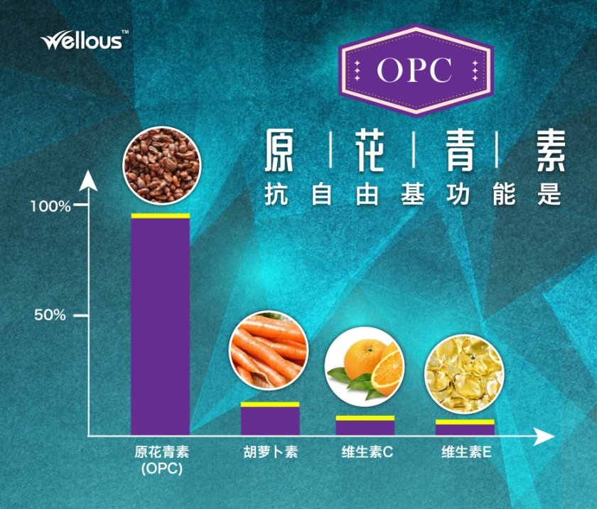 OPCs是众多抗氧化剂中不错的选择。它是一种抗氧化剂,其清除自由基的能力是维生素C的20倍,维生素E的50倍。除此之外,OPCs能够穿过血脑屏障来保护细胞免受自由基损伤。