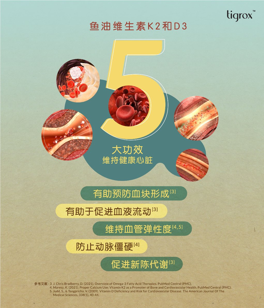 维生素K2对于心脏和大脑的保护,扮演着非常重要的角色。它帮助保持血管的弹性和柔韧性,让血液流通顺畅。它可以帮助激活骨钙素,帮助骨骼与血液中的钙结合,防止钙质在动脉中沉淀而导致阻塞。