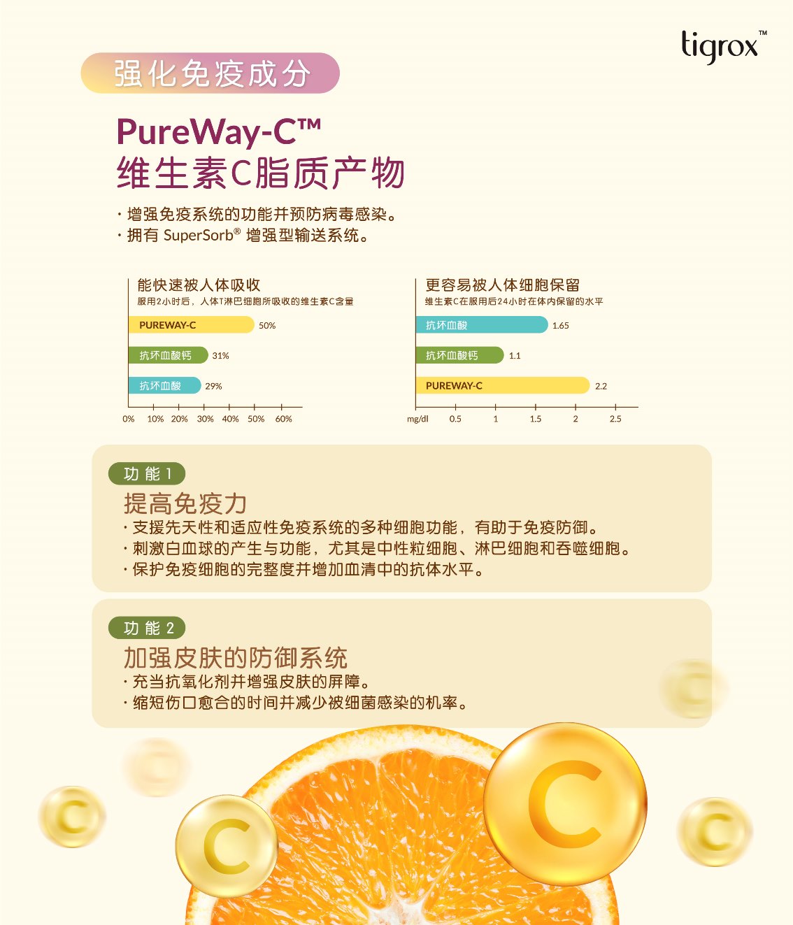 维生素能增强免疫系统功能,并能预防病毒感染。 舞茸菌丝体富含β-葡聚糖,能维持正常细胞功能。 综合果汁富含维生素A和C, 有助于增强免疫力, 减少感冒,改善肠道和消化系统等。